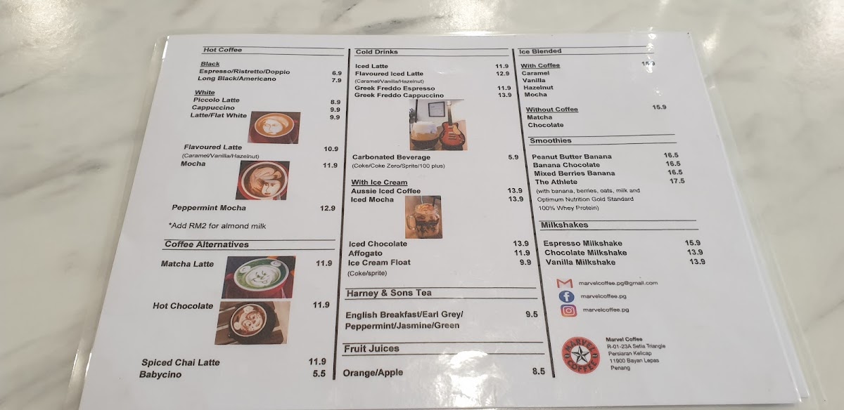 Marvel Coffee Menu